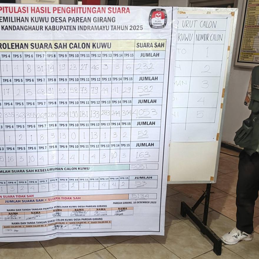 10 Desember 2025 -Pemilihan Kuwu Desa Parean Girang tahun 2025 telah dilaksanakan dengan tertib, aman, dan lancar. Proses pemungutan suara berlangsung sesuai dengan ketentuan peraturan perundang-undangan, serta diawasi oleh panitia pemilihan, unsur pengamanan, dan tokoh masyarakat demi menjaga transparansi dan keadilan dalam pelaksanaan demokrasi tingkat desa.