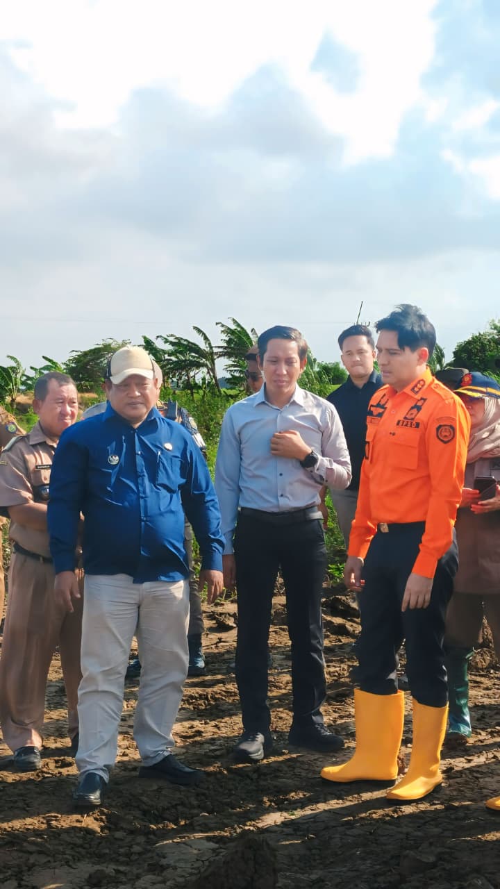 Bupati Indramayu, Lucky Hakim, meninjau secara langsung kondisi Tanggul Kali Cilet yang mengalami kebocoran bahkan jebol di Tanggul kali cilet blok groyok, Kecamatan Kandanghaur.